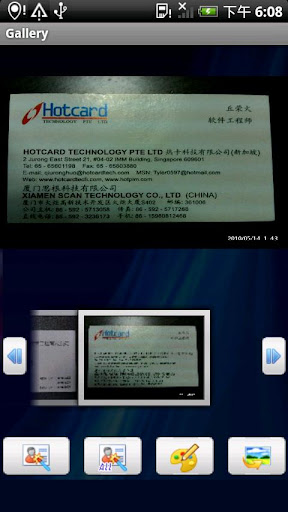 *用手機拍照後自動辨識名片文字,自動歸類名片訊息,匯出到手機聯絡人,同時存儲名片影像用於快速名片影像檢索
