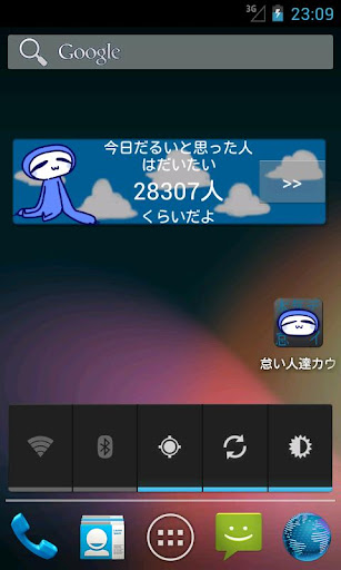 Twitterを利用して今日「だるい」と思った人がだいたいどのくらい居るのか計測できる可愛くて画期的で斬新なスタイリッシュ系ネガティブ系癒し系ウィジェットアプリです。