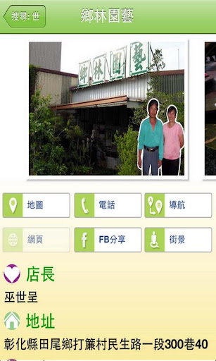 彰化田尾花卉、園藝、浪漫自行車道、公路花園聞名全台!「愛情不迷路APP」提供田尾優質店家服務資訊。四大分類資訊服務:「園藝景觀」、「特色餐飲」、「主題民宿」與「便利服務」讓您一手掌握每個店家的地址電話、營業時間、服務資訊與網站連結,更提供自動撥號、商家網站、網路推薦、定位地圖、行動導航與參考街景等智慧行動服務功能。此外,我們還設計了「主題地圖」功能,利用智慧型手機的GPS定位與圖層選擇功能,方便民眾快速找到離自己最近的店家和服務。