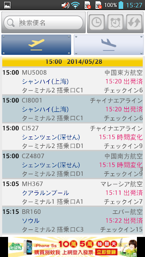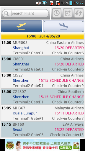 2. 起飛航班列表欄位點選可以設定航班提醒