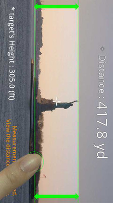 用法很简单。输入目标的高度,然后触碰屏幕。当2条线对準了目标,就可以得到距离值。