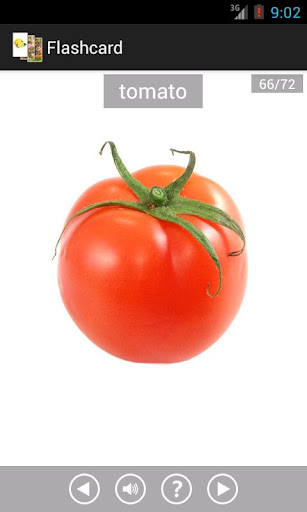 共包含四大类别(动物、形状和颜色、日常用品、水果和蔬菜)共300多张卡片。默认隐藏单词,点击“显示按钮”后显示。点击“朗读按钮”就会读给孩子听。