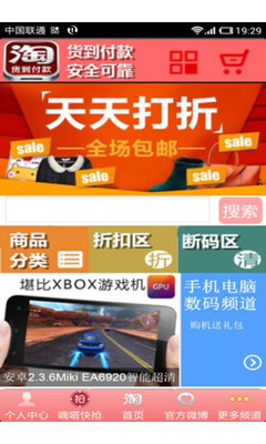 掌淘-货到付款移动网上商城购物客户端汇集厂家直销一手货源的实惠优质折扣商品。不需要银行卡,支付宝等在线支付,全部商品包邮送货上门满意后再付款,让你安全放心买到最优惠的宝贝。同时还精选淘宝全部优质实惠宝贝给亲们多一份选择