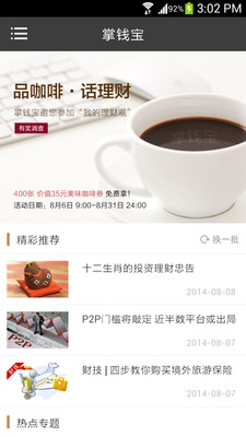 掌钱宝是宜信公司推出的供投资客户使用的个人现金管理工具,支持在线查看资产信息、在线预约理财服务等众多实用功能,旨在为中国大众富裕阶层提供专业、便捷、全新的理财服务。