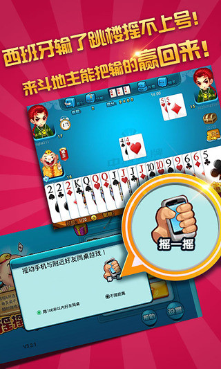 推荐理由: ☆奖励!每天话费奖励不间断,还有苹果、三星手机大奖等您拿;☆首创!手机摇一摇查找附近的好友同桌游戏,沟通如此简单;☆真人!超30万用户同时在线,智能速配,绝对公平;☆精美!靓丽的画面,简易的操作,独有联网技术,超省流量,超快速度。摇摇斗地主,让您体验让地主飞的感觉!