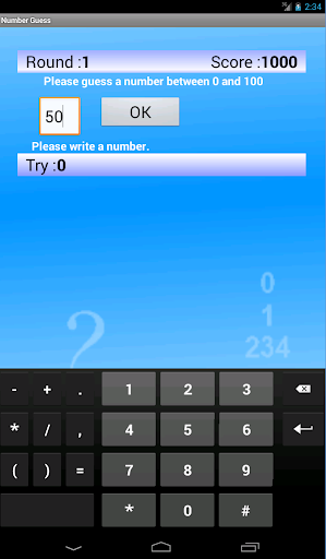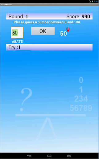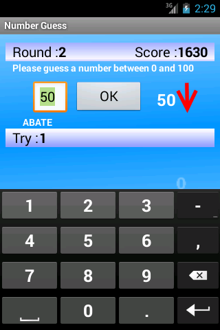 你猜一个数字0和100之间。你需要找到一个小于100的数字。要找到这个号码,你需要预测..每个猜你后,你需要增加或减少的数量。一步一步,你发现的数量。如果你无法猜测的数目对你scoore decrease.You纷纷猜测0和100之间的一个数字。你需要找到一个小于100的数字。要找到这个号码,你需要预测..每个猜你后,你需要增加或减少的数量。一步一步,你发现的数量。如果你无法猜测的数量scoore减少。