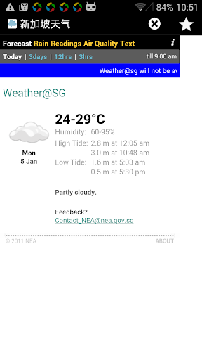 新加坡天气预报, 有3小时,12小时,3天的天气预报。还可以查看新加坡空气质量PSI
