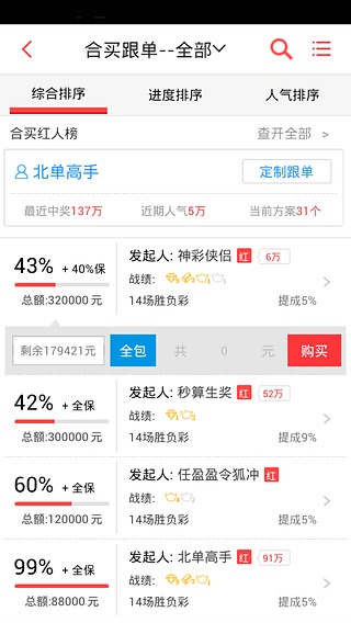 亮点三:合买名人汇聚一堂,名人方案战绩一目了然,让高手帮您中大奖!