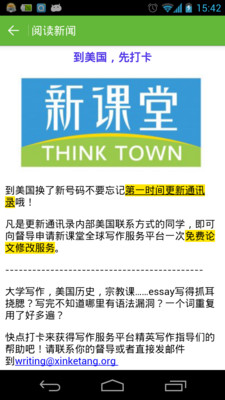 “新课堂同学录”是专供新课堂学生使用的内部通讯录,登录之后可以查看历届新课堂学生的联系方式和相关信息,同时会发布新课堂最新新闻及各种学术活动的动态,帮助学生们了解第一手留学,考试,申请信息。旨在为新课堂在读学生和校友提供高端精英交流平台,搭建国内外Thinktowner交流的桥梁。
