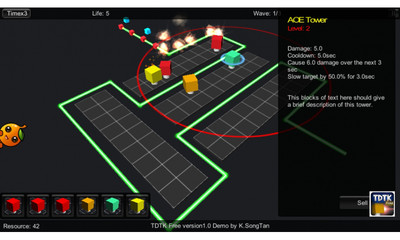 一款用 Unity 4.0 开发的塔防游戏,游戏中的塔都是一些方块,不过拥有华丽的攻击效果