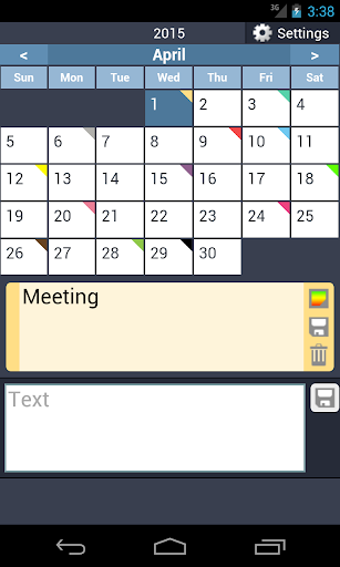 - 彩色的三角形提醒在每月顯示的事件。