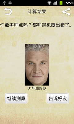 你想知道几十年后长得怎么样吗?是帅气\漂亮依然还是满脸皱纹?通过这款软件,你可以瞬间知道!