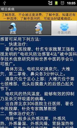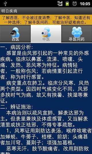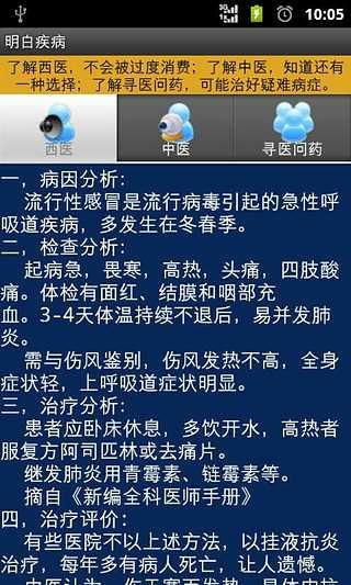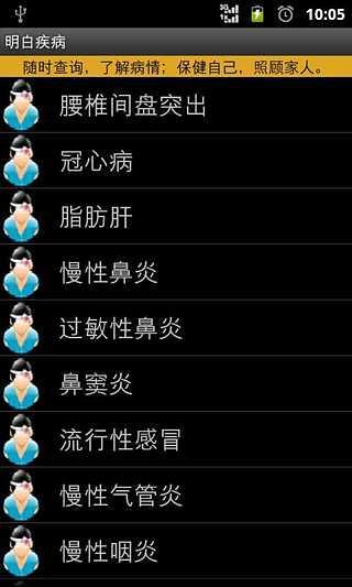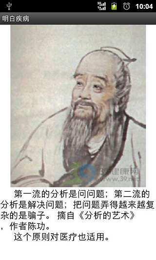 中国70%的年轻人表示无力照顾年老父母,如果父母得病怎么办,“明白疾病”给你提供了最好的选择! 每个人在医院几乎都处于不对称的地位,不知道自己的疾病是什么,特别是遇到疑难病,医生会怎么检查,怎么治,有个查询的东西就好了。 “明白疾病”的目标是,“知己知彼,掌握和医生一样的知识”。 软件中分为“西医”、“中医”、“求医问药”部分,能够达到“了解西医,不会被过度消费;了解中医,知道还有一种选择;了解求医问药,可能治好疑难病症”的作用。 【基本信息】 作者:纪常玉 更新时间:2014-06-13 版本:5.85 系统:Android 1.6以上 语言:中文