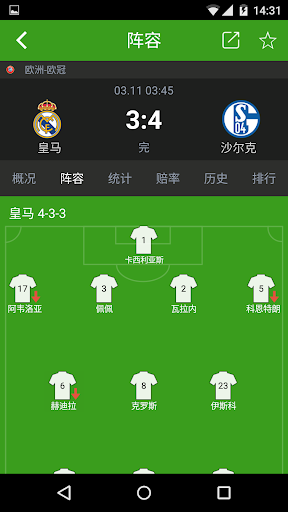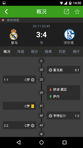 1.实时提醒:比赛状态变动以及进球(铃声、振动和状态栏)的提示,让你不会错过比分和赛事的即时情况