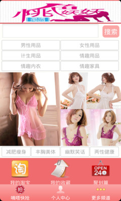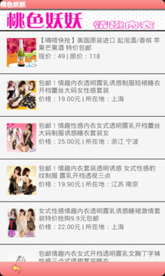 桃色妖妖是成人用品软件,未到18岁的朋友请勿下载,其内齐全了女性,男性,情趣等用品和健康资讯,幽默笑话,让您购物的同时享受健康和快乐!