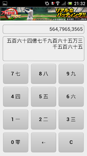 数字を入力すると漢数字に変換して表示してくれるアプリです。