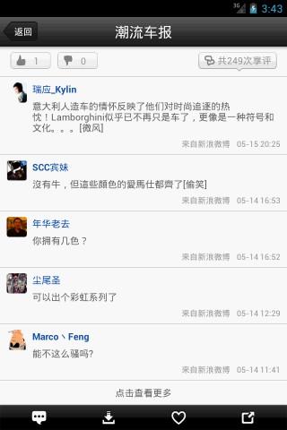 ★潮流齐共享:极其方便的将汽车美图分享给新浪/腾讯微博与人人网/开心网好友。