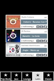 聽您的Android智能手機Radionomy系統上最好的流媒體電台之間的路段選擇:流行,搖滾,爵士,酒廊,拉丁美洲,經典。
