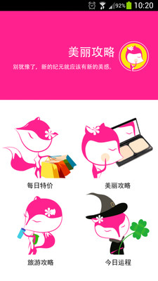 2、美丽攻略, 囊括了时尚美容,健美减肥,健康护肤,化妆美甲,精致美发和穿衣搭配等内容,让女生更美丽潇洒;