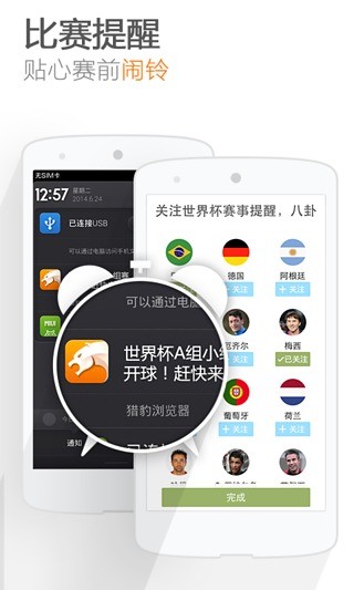 猎豹浏览器(世界杯)——视频离线下载0流量看片;快播百度影音影院大片抢先看;百万影视剧综艺节目随时追;Flash等百种格式万能视频播放;网页浏览速度快。 视频观看 完美支持Flash等上百种在线片源和影音格式播放(快播,百度影音等) 喜欢的影视提前离线缓存,0流量观看,无需2G/3G流量 百万影视剧,随时找到,想追就追,不错过所有国产剧,韩剧,美剧更新 全自动连续播放,连续剧,综艺,动漫自动播放下集无需动手 浏览体验 速度快,省流量,独家网页缓存技术,访问速度提升100% 智能输入,智能联想关键词和网址,自动匹配你想要 广告过滤,100%智能过滤,给你清爽安全浏览体验 为你量身定做的手机网站导航,热门网站一键直达 0秒启动,瞬间加载,对内核做了100多项的优化,给你超爽的上网体验 小说阅读 地址栏搜索优化更智能,网络热门连载小说 夜间模式,护眼极致夜间阅读体验 更多亮点 私人定制“最常访问”,一键直达最常访问网站 独家支持12306抢票,抢火车票100%成功