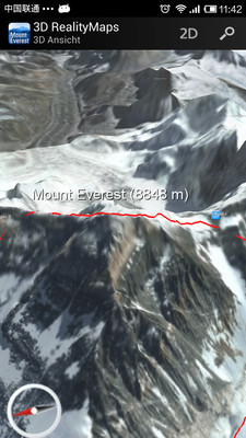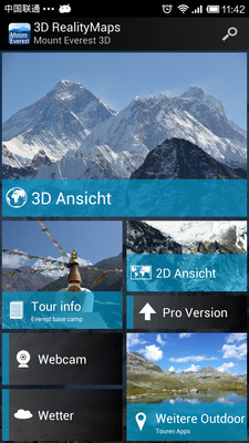 不过遗憾的是应用使用的是德语,对于我们来说有点难度,不能登上珠峰,看看3D全息地图也是不错的。