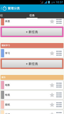 这样就可以让你监督管理自己的学习和生活,可以自定义分类和任务,还可以为任务添加每日,每周目标,闹铃提醒,备注等,是让你的生活变的高效有条理的好帮手.