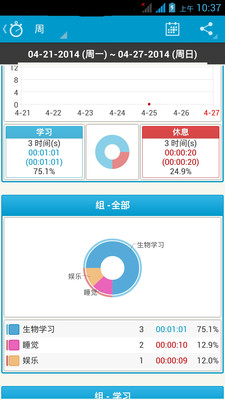 时间都去那了? 生活不高效? 此程序会自动记录您的学习或休息时间。可以自动统计显示每一天,一个星期,一个月,和一个自定义期间的学习和休息时间。