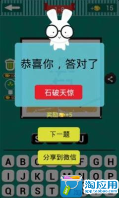 大家都在玩这种猜图,你如果没有这款游戏,你就out啦.每个关卡各是一副图,玩家需要从图中内容猜出一个成语即可过关,游戏有点难度,看看你能过多少关,可别抓破头皮.
