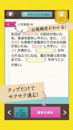 看護師国家試験を受験される看護学生の方必携の学習アプリ。
