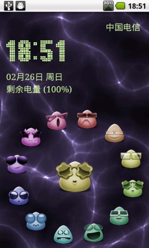 本应用为一款以可爱搞笑眼睛表情为主题的屏幕锁,有各种各样可爱搞笑的表情。您可以根据自己的喜好来设置自己的表情以及表情的颜色,字体的样式和颜色,解锁密码,锁屏界面的快捷方式等。点击中心表情即可出现唯美效果,将内部的表情拖出外圈上,然后松开手指即可解锁。本应用小巧简单,占系统资源少。