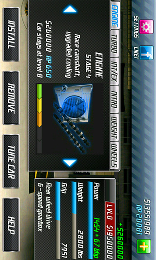你是否认为直线加速赛很简单?来试试找到挡位牵引力与极速间的最佳平衡点吧!使用氮气来获得更多的极速乐趣,不过不要按下的太早哦!将你的座驾调校到最佳状态获得更好的成绩想挑战一下世界纪录或者连续赢下10场