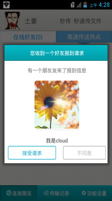 秒传是一款安卓手机免费专业文件传输工具!超越蓝牙,超快传输速度,拉近你我之间的距离。