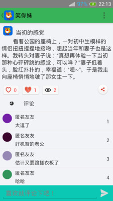 笑你妹是一款娱乐应用,致力于为用户提供经典冷笑话、搞笑漫画、经典PS图片等。让大家在欢笑中忘记烦恼,让“笑你妹”为你增添生活的乐趣!