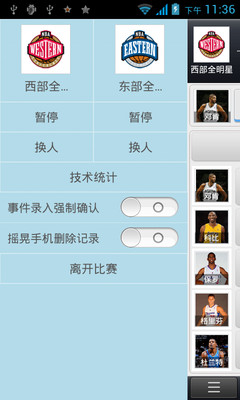 6. 比賽過程中隨時可以參考數據統計,球隊的或者個人的都可以看的到。球隊支持兩隊的數據對比,比賽過程中的優劣一目了然,大家可以針對的調整比賽策略,不在沒高人指點的情況下,無所適從。