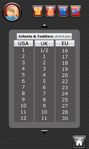 簡單衣服尺寸轉換器可以快速轉換男式,女式或兒童服裝尺寸。您還可以計算,一個國家的尺寸相當於另一個國家的多少尺寸。您永遠也不會買到過小的襯衫了!