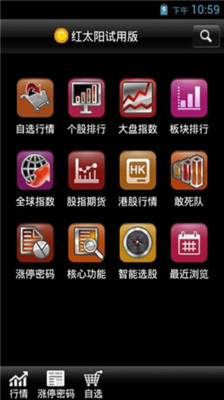 红太阳试用版基于安卓系统平台,由北京博信世纪科技有限公司红太阳软件研发,在PC版红太阳资讯终端的数据基础上,成功实时数据同步,资讯信息同步。一帐号多终端的永久免费使用,解决不在电脑边的广大股民看盘,决策问题。是一款相当不错的炒股工具.可看DDE DDY等机构数据