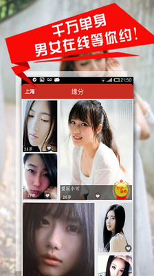 约爱:一款全国1.8亿单身男女时下相亲约会的热门应用,今年最受欢迎的交友婚恋软件。免费注册、同城交友、激情恋爱、相亲约会、快速邂逅心仪的伴侣。简单易用,快速互动,提供158种搭讪话术和聊天指导,让你学会聊天,完美破解尴尬,快速幽默的获取对方好感,帮你邂逅心仪对象,寻找钟爱的那个TA。