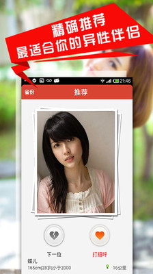 【精确匹配】 千万帅哥靓女在线互约,多种条件精确匹配。总有一个好姑娘在前方等着你,总有一个好男人愿意娶你回家,只要你来就能找到。