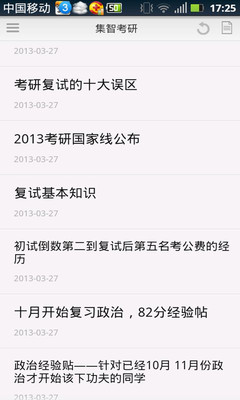 【考研集智攻略】以图文的方式提供了考研心路、英语、政治、数学、专业课和复试等详细信息。集智攻略在手,轻松考研!