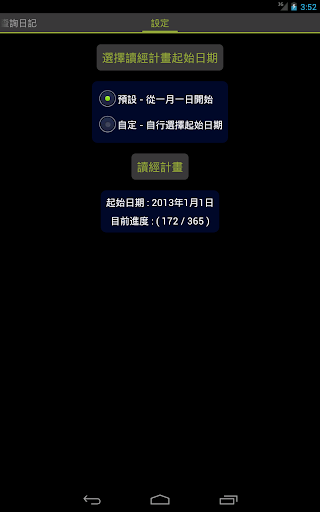 讀經計畫預設從一月一日開始,使用者也可以自定起始日期.
