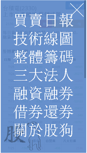 股狗網APP提供您每日上市櫃個股簡易籌碼分析資料:券商分點進出、三大法人買賣、融資融券變化、借券賣出等信用交易資料,也提供簡單線圖與整體總覽模式方便您查詢。資料由股狗網提供整理,完整資訊如上市櫃興櫃籌碼、權證籌碼、主力進出等完整版資訊則於股狗網www.stockdog.com.tw提供。