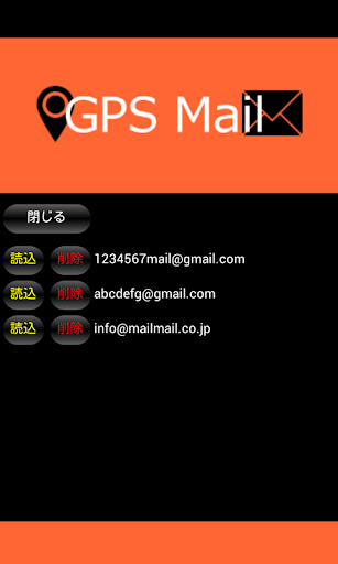 アプリから送信先メールアドレスの入力や記録・読込みが可能です。