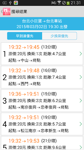 您只需要輸入出發站、到達站、時間(出發時間or到達時間or首班車出發or末班車到達), 將為您提供5種不同換乘方案, 包括時間、票價、乘坐列車的時刻表以及車站地圖等信息。 ,