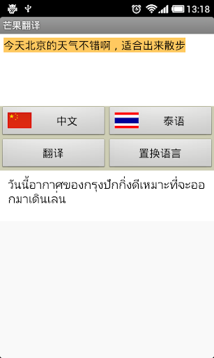 芒果免費提供高質量中英、中日、中泰、中西、中法、英泰、英日互譯的翻譯服務,能夠隨時隨地便捷的滿足用戶的翻譯需求,是您生活、旅遊、學習不可或缺的最佳幫手。默認支持英語,簡體中文,日語,法語和西班牙語