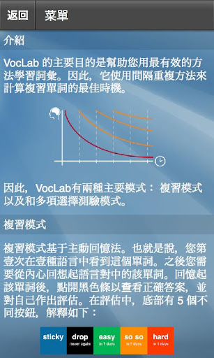 Voclab將逐步增加單詞的難度,以確保您在學習更複雜的單詞之前,對基本單詞建立牢固的基礎。這能夠使您對語言迅速獲得良好的理解。
