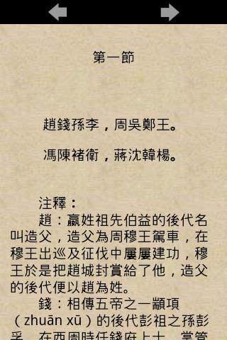 本應用包含:《百家姓》《弟子規》《千字文》和《三字經》。