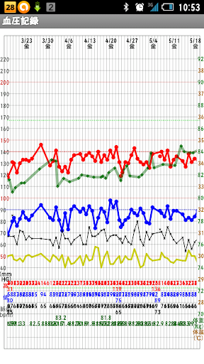血圧グラフは朝データのみ線接続