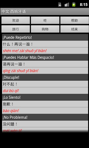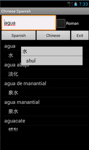 西班牙語普通話 - 中國(拼音)詞典 - 旅行字典翻譯西班牙語普通話顯示一個字漢語拼音(漢語拼音)普通話或普通話字符列表。這本字典也從普通話或普通話拼音譯成西班牙語的翻譯。從反向翻譯的翻譯列表複製一個字可以用來尋找同義詞,了解更廣泛地使用西班牙語的普通話字。雖然西班牙的國語辭典不提供定義或例子,在這樣的翻譯軟件的使用提供了機制,以更好地了解在西班牙的情況下普通話的話,而不需要的定義。 35K參考。