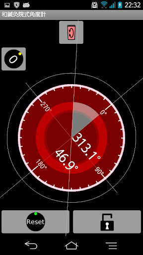 測定した角度をロックする場合は、鍵ボタンを押します。