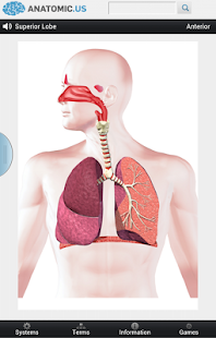你可以找到所有身體系統,直觀地了解哪些器官在哪個地方看到他們的身體系統和它們的位置。此外,在描述,它們的功能被寫入。